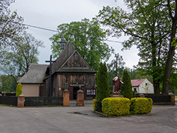 In Janiskowice kam ich an einer kleinen Holzkirche (so um 1500 errichtet), der Kościół Rzymskokatolicki pw. Świętej Małgorzaty Dziewicy i Męczennicy vorbei.