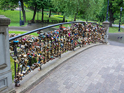 In dem die Statue umgebenden Basteiberg Park ist es richtig romantisch. Durch den Kanal fahren kleine Schiffe, und die Liebesschlossbrücke macht ihrem Namen alle Ehre.