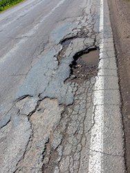 Doch dann wurde der Fahrbahnbelag wieder besser, dachte ich zumindest. Völlig unvermittelt tauchen Schlaglöcher auf. Wenn ich da rein wäre, wäre ich entweder gestürzt oder die Felge wäre hin. Aber ich konnte zum Glück ausweichen, da kein Auto in der Nähe war. Jetzt war ich gewarnt...