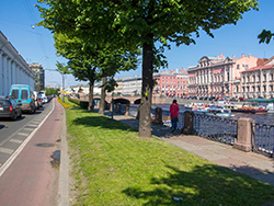 Am Fluss Fontanka ging es auf einem Radweg, der zwar nicht gut war, aber zumindest von den Autofahrern einigermaßen respektiert wurde. Nur wenn ein Auto abbog, musste man tierisch aufpassen, da die Autofahrer da keine Rücksicht nahmen.
