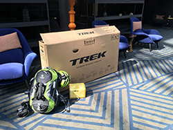Als ich ankam sagte die Dame an der Rezeption, noch bevor ich meinen Namen sagen konnte, dass der Karton hinten im Lager steht. Ich konnte als mein Fahrrad gleich soweit verpacken. Heikki und Anne hatten mir freundlicherweise den Karton ins Hotel gebracht und auch noch Klebeband und Polstermaterial mit rein gelegt. Und als besondere Überraschung auch noch ein Fläschchen Sekt zur Belohnung. So eine Überraschung, ich hab mich tierisch darüber gefreut.