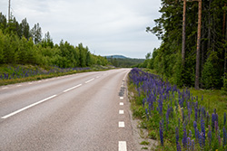Und so ging es Kilometer um Kilometer, auf und ab, mit Lupinen am Straßenrand, Wald um mich herum und der immer gleichen Straße vor mir. Wenn ein Auto oder Motorrad kam, hörte man es schon von weitem und war wenig überrascht, dass man überholt wurde.