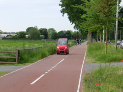 Als mir so ein rotes Auto entgegen kam, staunte ich nicht schlecht. So ein kleines Auto hatte ich schon in Amsterdam am Straßenrand gesehen. Aber das man damit auf den Radweg passt, Sachen gibt's...