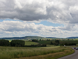 Bei Diemeringen ging es wieder auf eine sehr wenig befahrene Straße. Als ich dann "In The Middle of Nowhere" war, begann es zu schütten. Klar, weit und breit kein Unterstand und so stoppte ich unter einem Baum mit dichter Krone, der zumindest eine Zeitlang den Regen einigermaßen abhielt. Aber irgendwann kam die Nässe halt doch durch. Irgendwann ließ der massive Regen doch nach und ich fuhr weiter. Einige Kilometer weiter in Petersbach machte ich in einer Bäckerei Pause und aß zu Mittag. Wie heißt es so schön: Nach dem Regen kommt der Sonnenschein und so war es auch. Das Wetter wurde besser, ja sogar richtig schön.