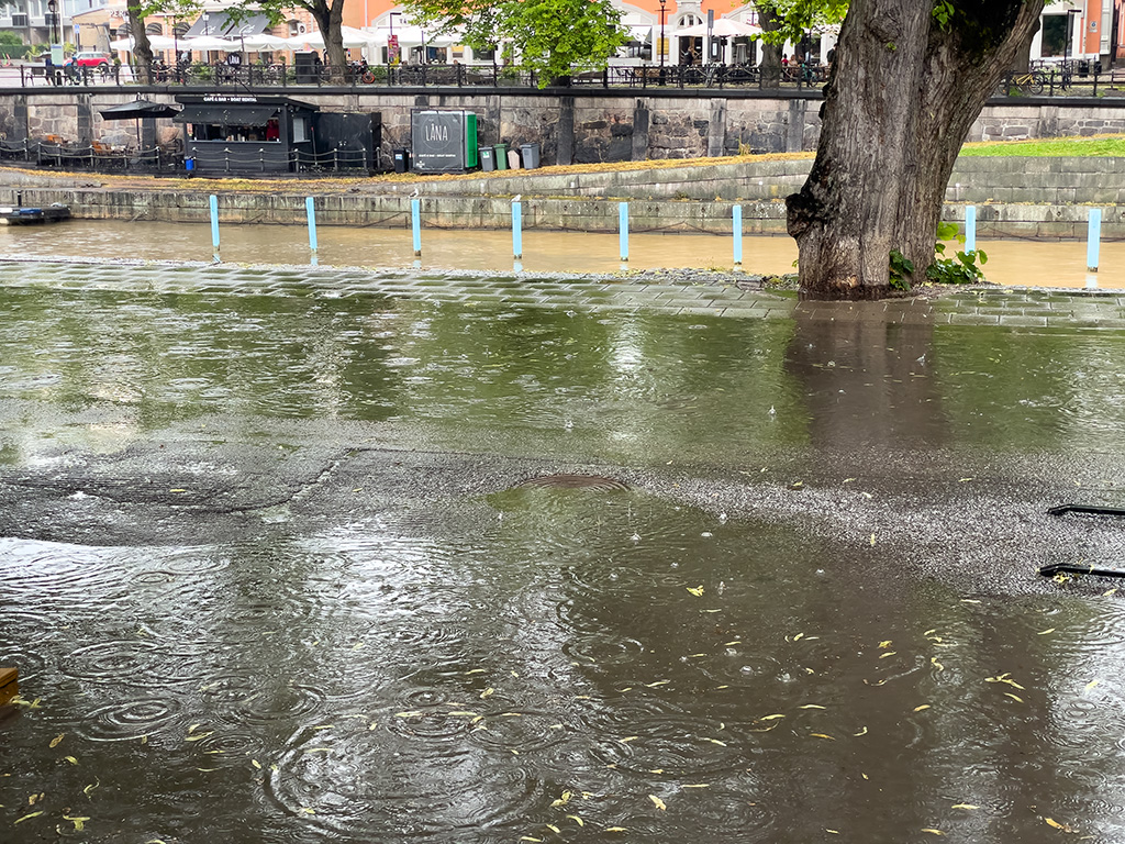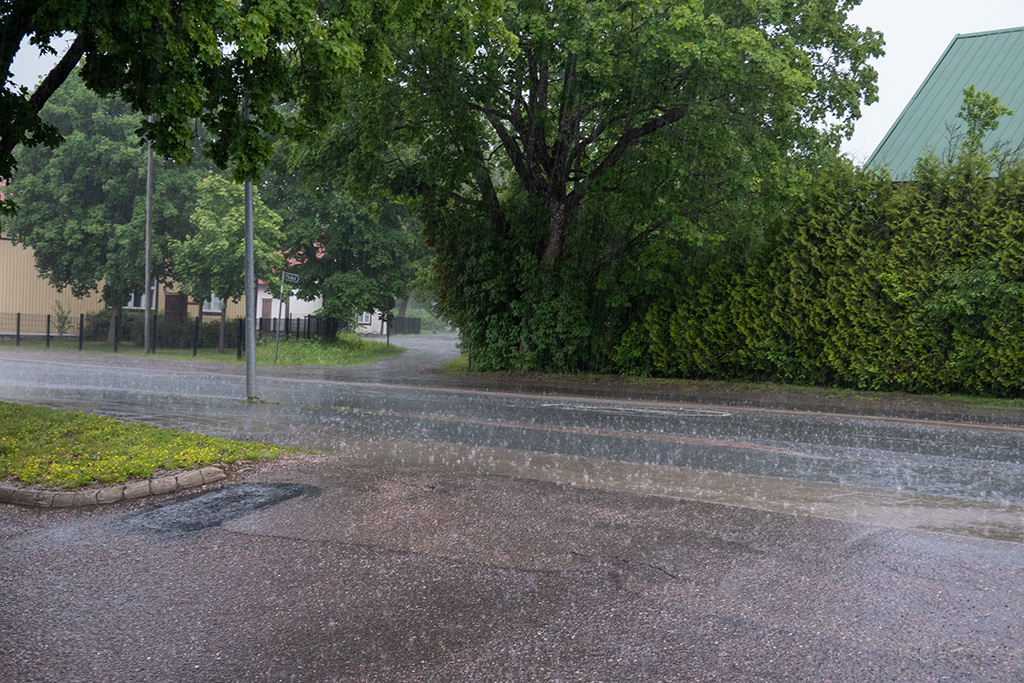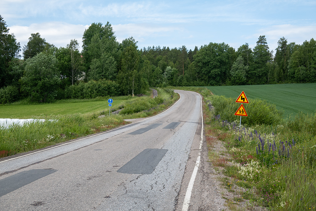 Am Ortseingang von Paimio begann es dann deutlicher zu tröpfeln. Die Tropfen wurden immer größer und mehr. Ich beschleunigte also, um irgendwo ein sicheres und trockenes Plätzchen zu finden. Optimal wäre jetzt ein Café gewesen, aber es war nichts in Sicht. Und je länger ich fuhr, desto nasser wurde es.