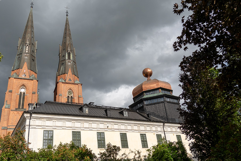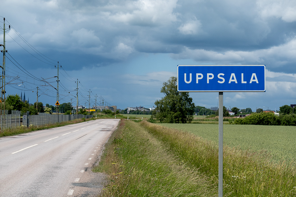 Und dann erreichte ich gegen 13:00 Uhr den Stadtrand von Uppsala. Etwas früh heute, aber westlich von Uppsala wäre es mit einer Unterkunft schwierig geworden. Der Himmel verhieß auch nichts Gutes, die dunklen Wolken drängten etwas zur Eile.