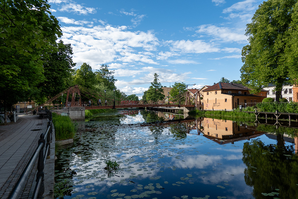 Es dauerte aber nur rd. 20 Minuten, bevor ich den Fluss Fyrisan überqueren und die letzte viertel Stunde zum "Hotell Stella" radeln konnte. Leider konnte ich erst um 15: 00 Uhr einchecken, so dass ich irgendwie ein Stunde rum bringen musste. Ich ging in ein nahegelegenes Café Uroxen. Nicht die beste Idee. Ich bekam zwar zuerst noch etwas, danach musste ich aber, wie alles anderen Gäste das Lokal verlassen, da die Wirtin irgendwie wegen eines gestohlenen Autos jetzt zur Polizei musste.