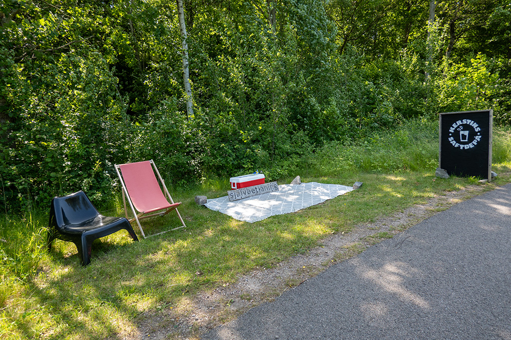 Bei Stensjö tauchte am Radweg ein Schild auf, welches auf "Kerstins Saftdepa" hinwies. Kurze Zeit später tauchte auch tatsächlich das Saftdepa auf. Eine Kühlbox mit zwei Liegestühlen am Wegesrand, wo man seinen Smoothie herausnehmen konnte. Bezahlt wurde einfach per Swish, einem schwedischen Bezahlsystem, welches jedoch aktuell ein schwedische Bankkonto voraussetzt. Ich konnte mit also nicht rausnehmen, aber dafür wurde mir ein paar Meter weiter von "Kerstins Saftdepa" eine gute Weiterfahrt gewünscht. Ein paar Meter weiter den Radweg entlang standen wieder zwei Stühle rum, diesmal neben einem Gefrierschrank, mit Eis am Stiel, bei dem man sich auf die gleiche Art und Weise bedienen konnte.