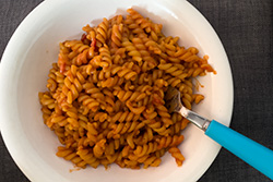 Mein Magen hatte zwar heute Ruhe gegeben, aber ich wollte heute eher noch vorsichtig mit dem Essen sein und entschied mich daher, zum Abendessen nicht in die Kneipe gegenüber zu gehen. Ich wollte einfach für morgen keinen "flotten Otto" riskieren. Da die Anzahl der Kochutensilien und vor allem des Geschirrs und der Bestecks sehr übersichtlich war, gab es heute nur Nudeln mit Soße. Und das war schon eine Herausforderung. Erst musste ich alles, was ich in der Küche benötigte, ordentlich abwaschen. Das Zeugs hat alles geklebt und teilweise waren auch noch Rest von den Vorgängern dran. Um ganz sicher zu gehen, kochte ich alles danach nochmal ab bzw. übergoss zumindest alles was ich nicht abkochen konnte, zumindest mit kochendem Wasser.