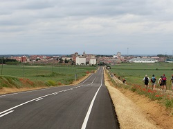 Ab jetzt ging's dann auf die für Fußpilger besonders belastende Strecke. Kilometerweit durch die Meseta, ohne Schatten und Schutz, immer gerade aus. Heute ging's aber, der Himmel war bewölkt, die Temperaturen bei angenehmen 20°C, so lässt sich's aushalten. Und am Ende der langen Strecke dann wie eine Fata Morgana, erscheint Calzadilla de la Cuezza mit einer Bar (und einer Herberge). Für mich ging's weiter in Richtung Sahagún. Teilweise wieder entlang der N-120. Die meisten Fußpilger waren an dieser Stelle schon ziemlich am Ende ihrer Kräfte und so erhielt man meist nur noch ein Kopfschütteln oder eine ganz leise Antwort, wenn man ihnen "Buen comino" zurief. Endlich erreichte ich Sahagún.