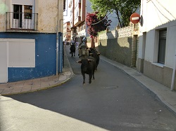 Nach dem Duschen und dem obligatorischen Wäsche waschen war es dringend notwendig, das Fahrrad mal wieder zu putzen und neu zu fetten. Der Staub in der Meseta hatte sich überall dazwischen gesetzt. Anschließend ging ich ein bisschen in der Stadt bummeln und war überrascht, dass in Sahagún eine Stierhatz für diesen Abend geplant war. Ich hatte allerdings mehr als 5 junge Stiere erwartet, die relativ gelassen hinter ein paar jungen Männern herliefen, die 50 bis 100m vor den Stieren ihren "Mut" bewiesen.