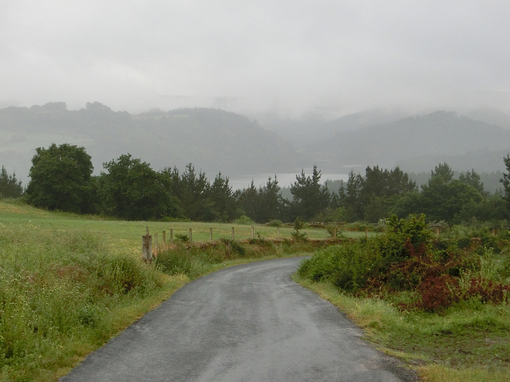 Die Frau konnte heute Morgen fast nicht mehr auftreten. Sie wird mit dem Taxi zum Arzt fahren, aber ihre Pilgerreise ist hier wohl schon vorbei. Sie waren nicht wirklich lange unterwegs, die beiden. Beim Frühstück habe ich dann noch eine alte Amerikanerin, ich glaube sie war 75 oder 78 Jahre alt, die, wie der alte Mann in Nájera, jeden Tag 10 oder 15km läuft. Sie habe ja Zeit sagte sie, sie hat es nicht eilig. Eigentlich hat sie Recht, warum soll sie sich in ihrem Alter noch beeilen. Ich bin nach dem Frühstück im Regen los. Schade war, dass ich fast nichts von der Landschaft gesehen habe. Kann man aber nichts machen. Wenn hier die Sonne scheint, ist es sicher richtig schön.