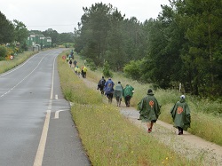 Weiter ging's aufwärts in Richtun Ventas de Narón. Die Pilgerströme, die sich jetzt in Richtung Santiago wälzten, waren teilweise schon extrem. Auffallend war, dass viele der Pilger ohne Gepäck unterwegs waren. Lustig war, dass man die Fußpilger, die erst in Sarria gestartet waren, meist daran erkannte, dass sie humpelten. Die Fußpilger, die schon länger unterwegs waren, hatten diese Phase schon hinter sich. Ist aber auch egal, jeder soll den Weg bewältigen, den er machen mag und kann.