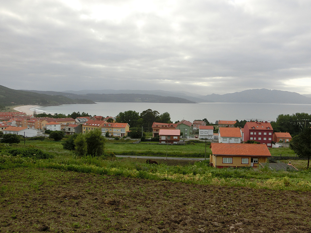 Beim Frühstück lernte ich eine junge Schweizerin kennen die, wie sich herausstellte, mit dem gleichen Flugzeug nach Zürich zurück flog wie ich. Und so redeten wir noch eine ganze Weile, bevor ich kurz vor 8 Uhr bei bedecktem Himmel in Richtung Muxía startete. Diesen Trip hatte ich eigentlich gar nicht geplant, aber auf dem Weg der letzten Tage kam mir Muxía als Abschluss doch richtig und wichtig vor. Etwas ungeschickt war, dass heute Sonntag ist und von daher kein Bus zurück nach Fisterra fährt, weswegen ich beide Weg mit dem Fahrrad fahren muss. Auch gut, soll halt so sein.