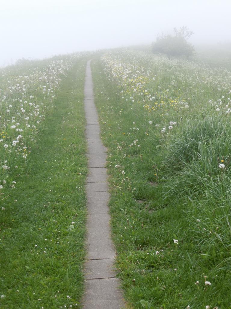 Und dann ging der Radweg direkt an der Ostsee entlang. Wegen des Nebels sah ich leider nicht sonderlich viel von der Ostsee, auch weil ich mich auf den Radweg konzentrieren musste, der als enges Band durch das Gras führte.