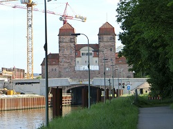 Kurz vor Minden führte dann der Radweg parallel zur Weser, so dass der Abschluss der heuteigen Strecke wunderschön war. Auf dem Weg erklärte mir noch eine freundliche Radlerin den Weg zum nächsten Fahrradgeschäft, so dass ich den defekten Schlauch gleich ersetzen konnte. Alsbald sah ich auch die Schachtschleuse in Minden, meinem heutigen Ziel.