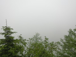 Und die schöne Aussicht war auch dahin. Bei Frühstück bekam ich mit, dass der Vater, der heute mit seinem Sohn in die Berge wollte, die Tour abgesagt hatte, da es bei dem Wetter einfach keinen Sinn machte. Recht hatten sie, aber ich wollte nach Hause. Und so zog ich meine Regenklamotten an und montierte die Fahrradbeleuchtung. Um 8:45 Uhr begab ich mich auf meine letzte Etappe dieser Tour.
