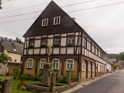 Wobei Schiriswalde durchaus einen kurzen Besuch wert war. Im Ortskern gab es schöne Fachwertkhäuser, sowie die Pfarrkirche Mariä Himmelfahrt. Die Kirche sah aus der Ferne eigentlich schöner aus, da sie ziemlich eingebaut war.
