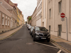 Mein Navi lotste mich in eine Einbahnstraße, die ich jedoch als Radler ganz offiziell in Gegenrichtung befahren durfte.