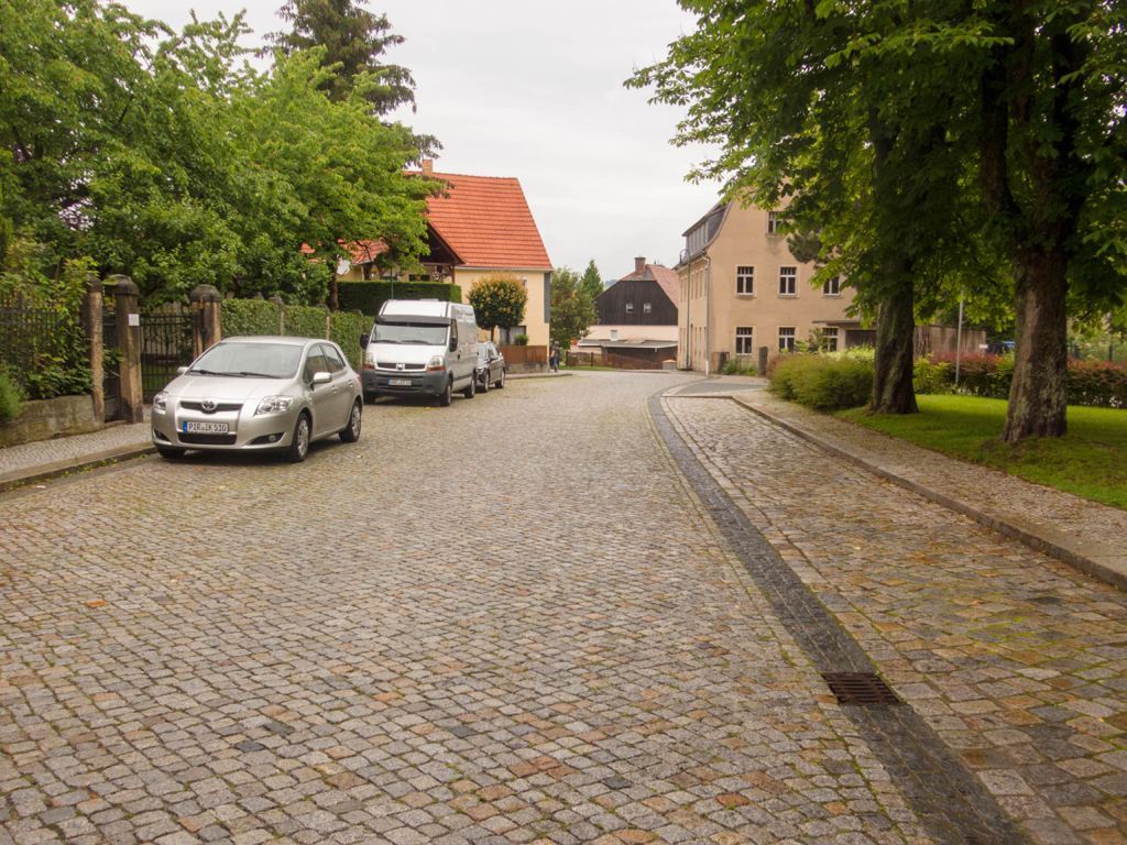 Und so startete ich erst gegen 9:30 Uhr in einen regnerischen Tag. Der Regen war zwar nicht stark, aber zu viel, um ohne Regenklamotten zu starten. Das Problem war nur, dass in Neustadt eigentlich überall Kopfsteinpflaster verlegt war, was bei Nässe bzw. Feuchtigkeit recht rutschig ist.