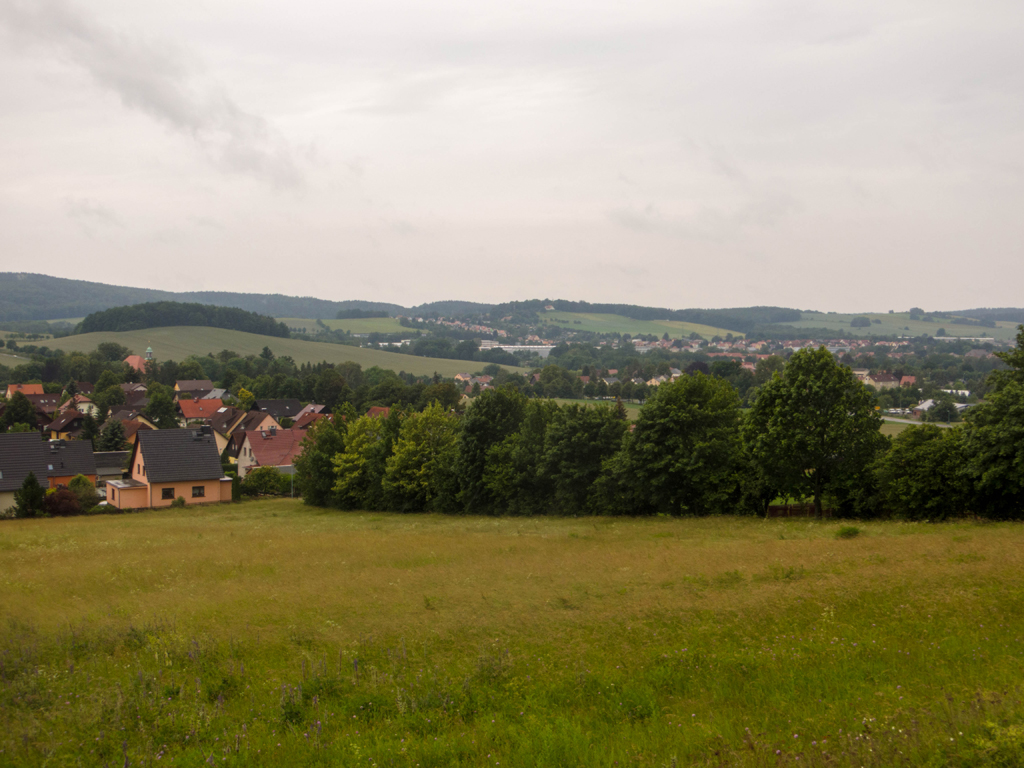 Als ich den höchsten Punkt erreicht hatte, ging es auf und ab durch die Landschaft. Hinter Steinigtwolmsdorf hatte man wieder einen fantastischen Blick über die Landschaft. Die Aussicht wäre vermutlich bei Sonnenschein noch wesentlich schöner gewesen.