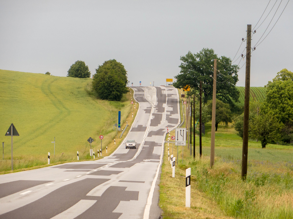 Die B6 nach Reichenbach/Oberlausitz ähnelte einem Flickenteppich, der sich sanft durch die Hügel zog. Der Belag war aber eigentlich voll toll, da eben. Auch wenn es nicht so aussah.