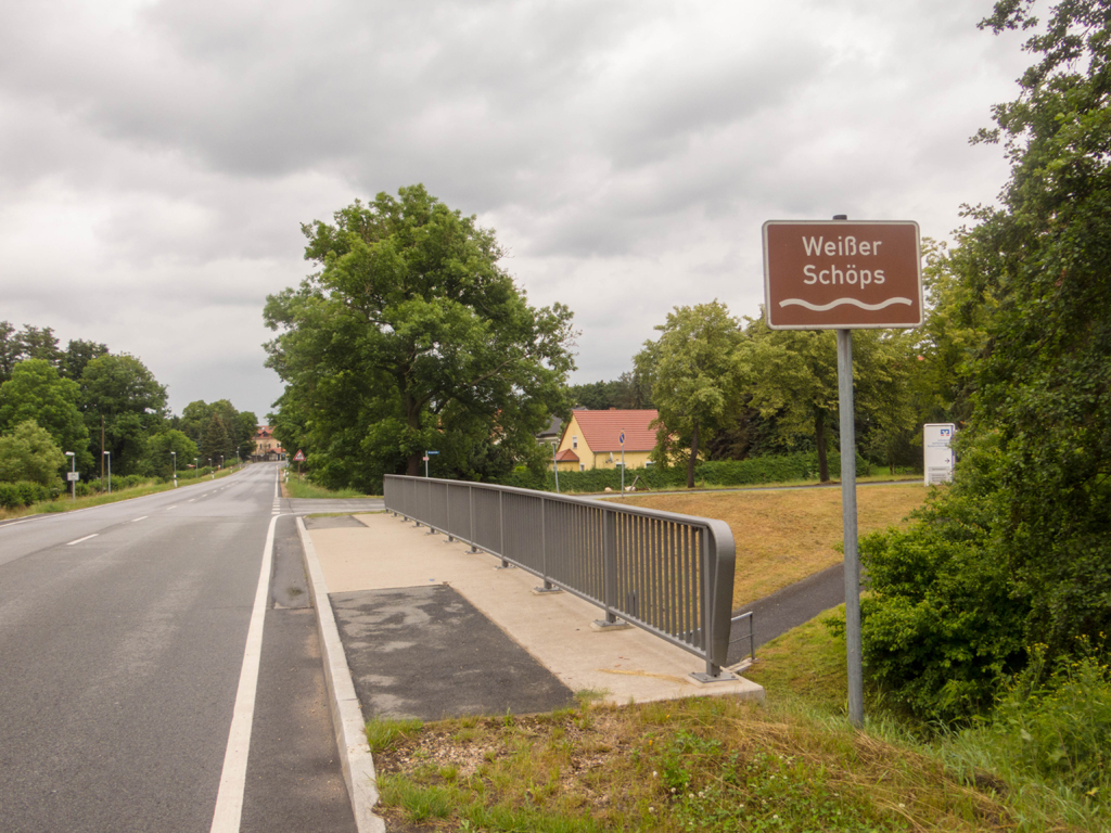 Kurz vor Reichenbach/Oberlausitz überquerte ich dann den Fluss "Schwarzer Schöps". Der Name dieses riesigen Gewässers muss schon an der Brück angegeben werden.