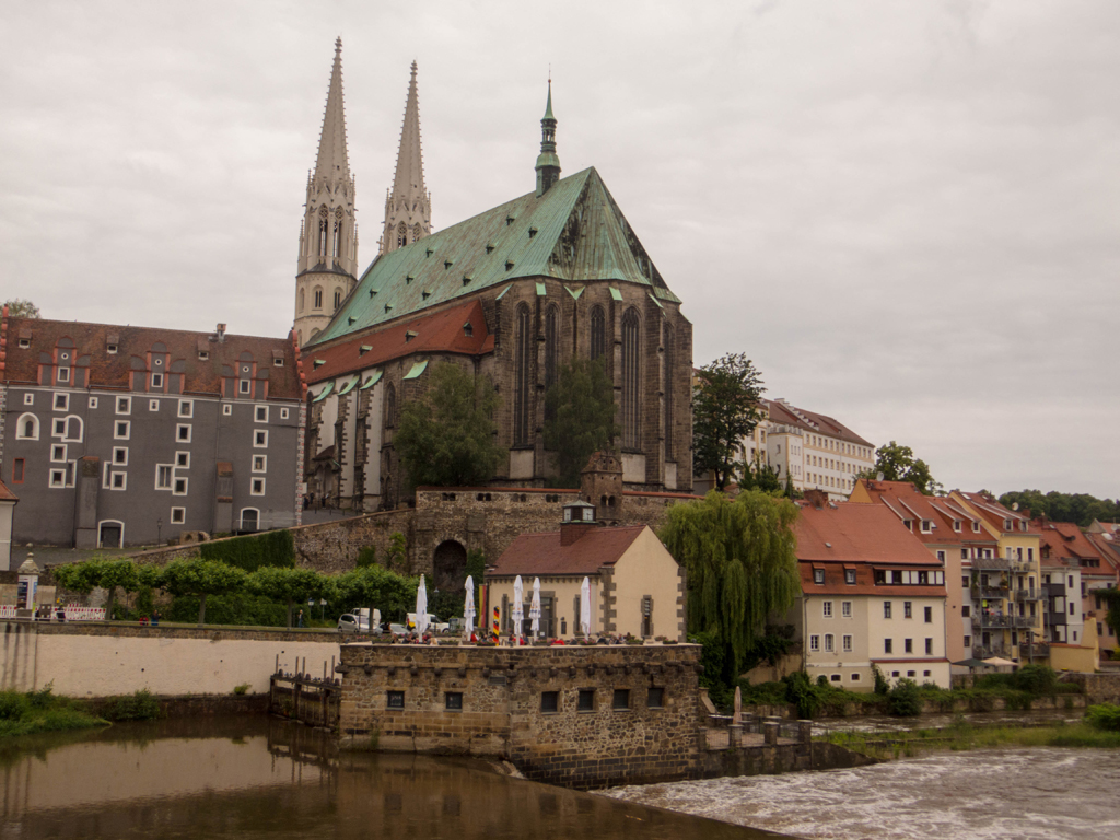 Der Blick von der Brück zurück auf Görlitz zeigte die Pfarrkirche von der östlichen Seite.