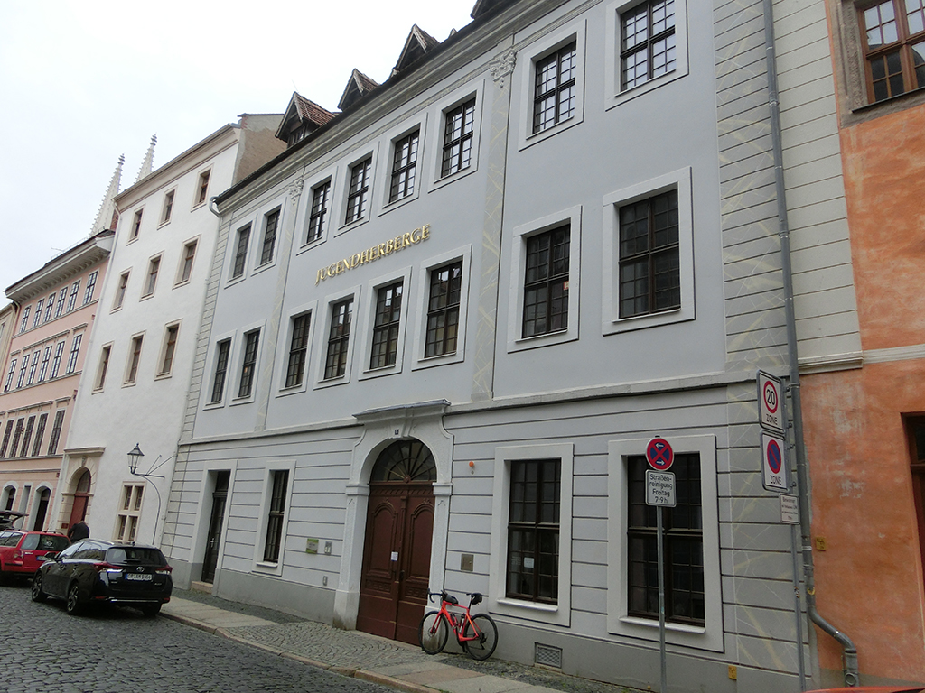Nur noch von der Brücke hoch zum Untermarkt und zur unmittelbar daneben gelegenen Jugendherberge. Da ich zu früh dran war, musste ich noch eine viertel Stunde warten, bevor ich einchecken konnte. Die überdachten Fahrradparkplätze im Innenhof waren alle durch die Maschinen der Christlichen Motorradfahrer Sachsen belegt. Das störte mich jedoch keineswegs, da ich mein Fahrrad mit ins Zimmer nahm. Bedingt durch Corona wurden die Zimmer eh nur einzeln belegt, also alles gut.