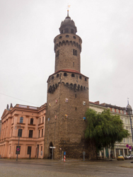 Weiter dann über den Obermarkt zum Frauenturn (in Görlitz auch "Dicker Turm" genannt) von 1250, der ursprünglich ein Teil der historischen Stadtbefestigung. Der Name "Dicker Turm" kommt von der massiven Bauweise des Turms (die Mauerstärke beträgt im unteren Teil über 5m).