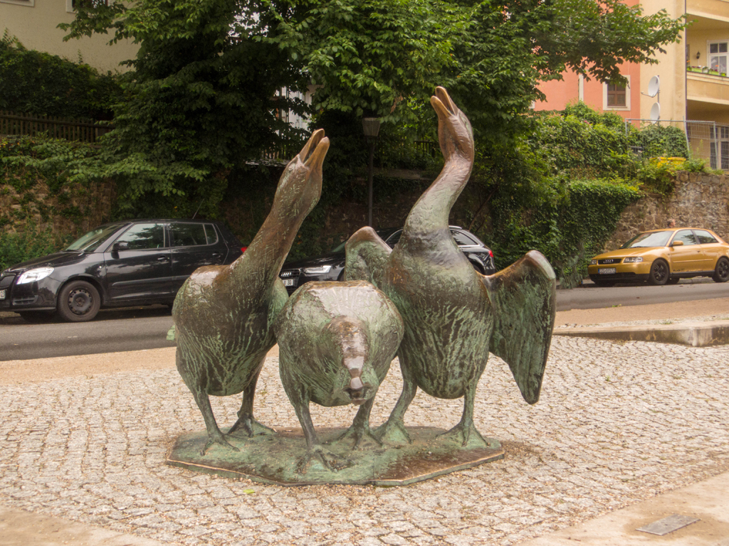 An der Uferstraße haben die Gänse sogar eine eigene Skulptur.