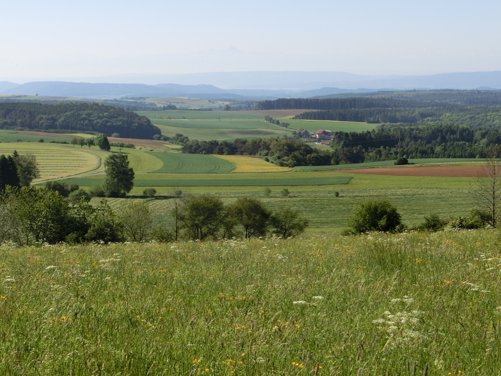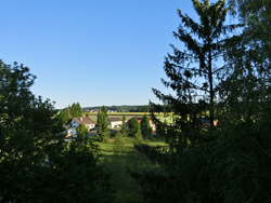 Dafür wurde ich oben dann von einem grandiosen Ausblick belohnt. Und gleich anschließend fand ich auch endlich eine offene Gastwirtschaft "Schweizerhof Waldau" , in der ich im Schatten ein kühles Radler trinken konnte.
