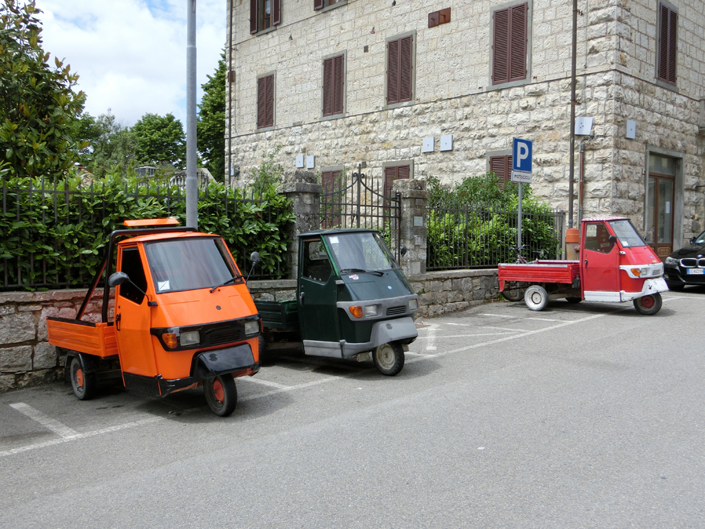 Aber zuerst einmal gab eine Stärkung in einer an der Straße gelegenen Bar. Dabei machte ich eine interessante Entdeckung: Wenn man die APE rückwärts einparkt, dann darf man sie wohl auf den Zweiradparkplätzen abstellen. (Muss ich mal schauen, was die Damen und Herrn in Kaufbeuren dazu sagen.)
