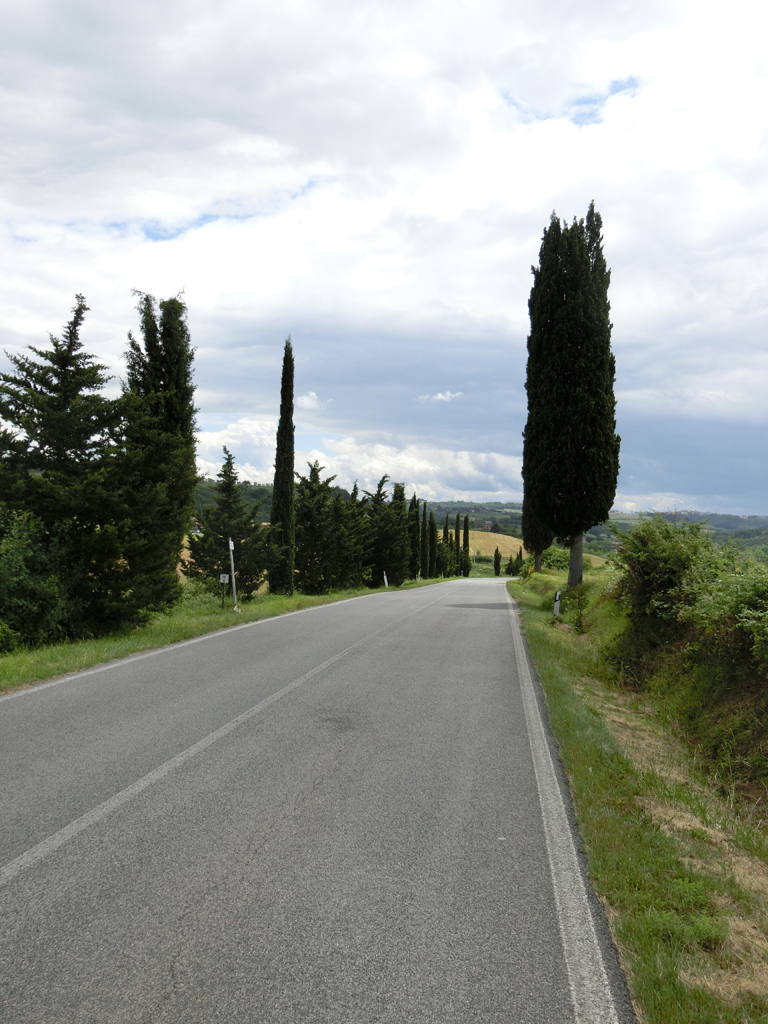 Es ging weiter bergab, doch vor Siena stieg es nochmals an, so dass es vor dem Ziel nochmal zu strampeln galt.