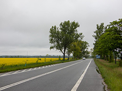 Die Freude währte aber nur kurz. Nach nur ca. 500m stand das Schild, welches die Weiterfahrt für Fahrräder untersagte. Lt Karte sollte die Straße zwar weiter gehen, aber wer weiß das schon so genau. Also suchte ich nach einer Alternative und fand diese auch, allerdings bedeutete dies auch einen mächtigen Umweg. Also zurück zur viel befahrenen Landstraße und weiter Richtung Wielun.