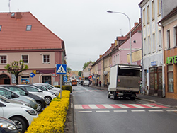 In Kepno dann passierte es. An einer Hausecke bin ich wohl über einen hochstehenden Pflasterstein gefahren. Ich hatte ein komisches Gefühl, so wie sich das angefühlt hat, aber zunächst ging alles gut. Kurz vor Wieruszow war klar, dass es mich erwischt hatte. Das Fahrrad fühlte sich schwammig an und bei einem Stopp am Straßenrand bewahrheitete es sich: ziemlich wenig Luft im Hinterrad. Mit dem Handy fand ich schnell einen nahe gelegenen Fahrradhändler und so pumpte ich mit meiner kleinen Pumpe soviel Luft nach, wie es eben ging und machte mich auf in die Werkstatt. Am Kreisel fragt ich noch eine Radfahrerin, ob es den Händler auch wirklich noch gab, was sie bejahte.