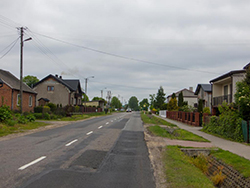 Nach kurzer Fahrt dann am Laden angekommen und der Händler machte sich auch gleich an die Arbeit und wechselte den Schlauch. Er reinigte auch gleich den gesamten Antriebsstrang, da dieser durch die Regenfahrten der vergangenen Tage ziemlich dreckig und verklebt war. Der komplette Service hat (ohne Schlauch, weil da hat er einen von mir eingebaut) 50 Zloty gekostet. Alles in allem hat mich die ganze Aktion dann doch 1 1/2 Stunden gekostet und ich hatte gerade mal 50 km, also rd. 1/3 der geplanten Strecke absolviert. An einer Tankstelle am Ortsausgang aß ich noch etwas, um mich dann gestärkt, aber mit reichlich Zeitverlust auf den Rest der Etappe zu begeben. Ich fuhr also zurück zu viel befahrenen Landstraße und war froh, dass ich kurz hinter Tyble wieder verlassen konnte.