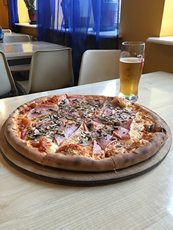 Nach dem Duschen erst einmal Getränke gekauft und dann, mangels Alternative (ein Restaurant war 5 km weg und das andere Restaurant schloss um 18 Uhr), in einem nahe gelegenen 3-klassigem Pizza-Imbiss zu Abend gegessen. Irgendwie war ich nach der langen Strecke heute müde und bin schon um 9 Uhr ins Bett gegangen.