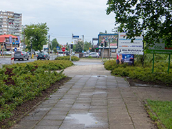 Bevor ich wieder losfuhr musste noch ein Bild vor dem Laden mit mir gemacht werden, weil so einen wie mich, der freiwillig nach St. Petersburg radelt, hatte er noch nie gesehen.