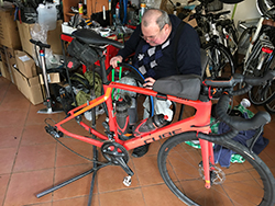 Mit meinem Fahrrad dann die rd. 1,5 km zum Fahrradladen gelaufen und pünktlich um 9:00 Uhr aufgeschlagen. Ich musste erst noch 20 Minuten warten, bis sie alle Räder aus dem Laden geräumt hatten, dann konnte es los gehen.
