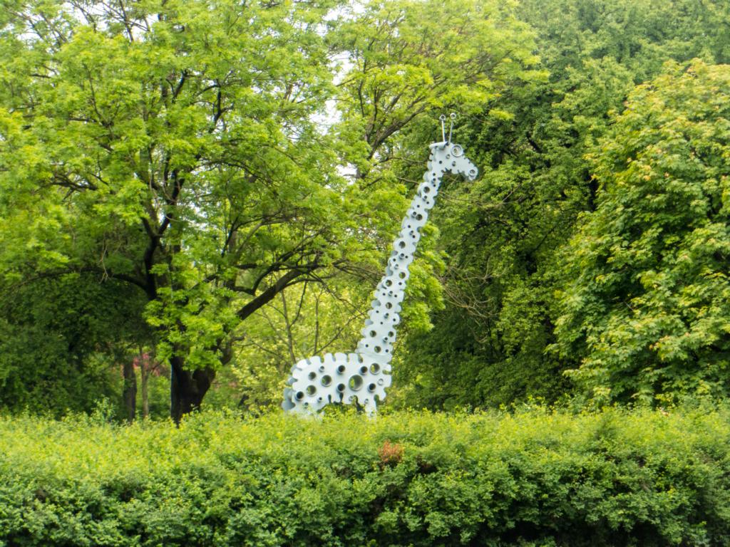 Am Stadtrand schaute dann eine Giraffe unmotiviert über die Hecke.
