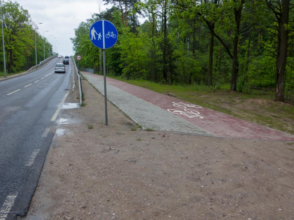 Es ist in Polen in den Städten meiste sehr gut, wie die Fahrradwege ausgebaut sind, manchmal muss man aber schon schmunzeln. Der Radweg selbst ist toll gemacht, nur drauf kommt man nur, wenn man das Fahrrad trägt (zumindest, wenn man mit dem Rennrad unterwegs ist).