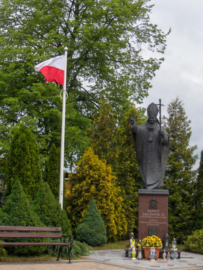 Auffällig waren die immer wieder am Straßenrand auftauchenden Statuen von Papst Johannes Paul II (wie hier in Wasewo)