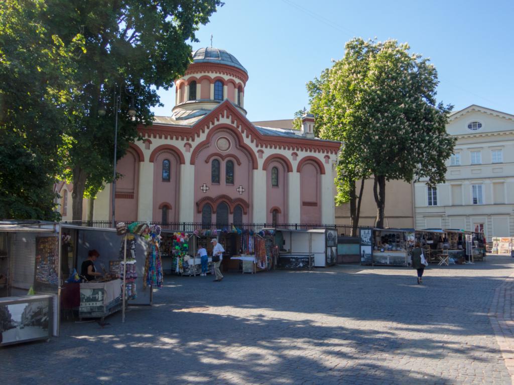 Um so bin ich erst so gegen 9:30 Uhr nach dem Frühstück in Richtung Gedminas-Turm aufgebrochen. In der Stadt war noch alles ruhig, vor der orthodoxen St. Parasceve Kirche wurden die Stände erst aufgebaut.