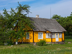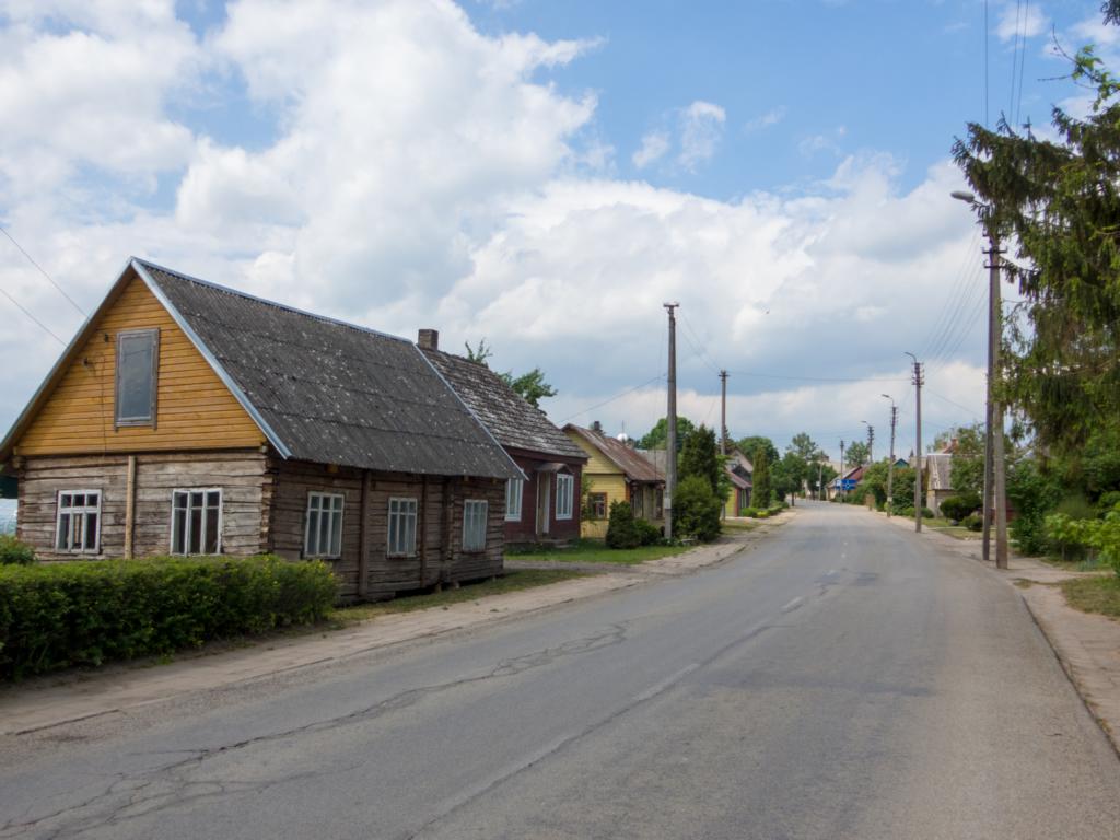 Kurze Zeit später fuhr ich durch Vabalninkas, ein kleines Örtchen mit einigen in die Jahre gekommenen Häuschen, aber einer Kirche, die top in Schuss war.