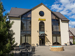 So gegen 14:30 Uhr erreichte ich meine heutige Unterkunft "Avanti apgyvendinimas-restoranas". Es war irgendwie komisch, alles verschlossen, obwohl lt. Buchungsbestätigung die Rezeption zwischen 14:00 und 16:00 Uhr offen sein sollte. OK, sie haben mich wohl versucht anzurufen, während ich auf dem Fahrrad saß. Ich telefonierte kurz und runde 10 Minuten später kamen zwei Damen angefahren. Die Inhaberin und ihre Tochter, die als Übersetzerin fungierte. Alles geklärt und das Zimmer bezogen. Ich hatte bei 23€ ja mit allem gerechnet, aber nicht mir einem so schönen Zimmer.