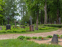 In Bārbele, einige Kilometer weiter, stand am Straßenrand eine kleine Kirche mit einem interessanten alten Friedhof.