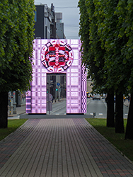 Am Ende der Grünen Insel zwischen den Fahrbahnen war dann ein Torbogen aufgestellt, was immer er zu bedeuten hat.
