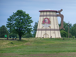 Das wurde mit einige Minuten später klar. Als ich den überdimensionalen Bierkrug auf der Wiese sah , dachte ich zuerst an eine Brauerei. Aber hier gibt es das Münchhausen-Museum, wer hätte das gedacht.