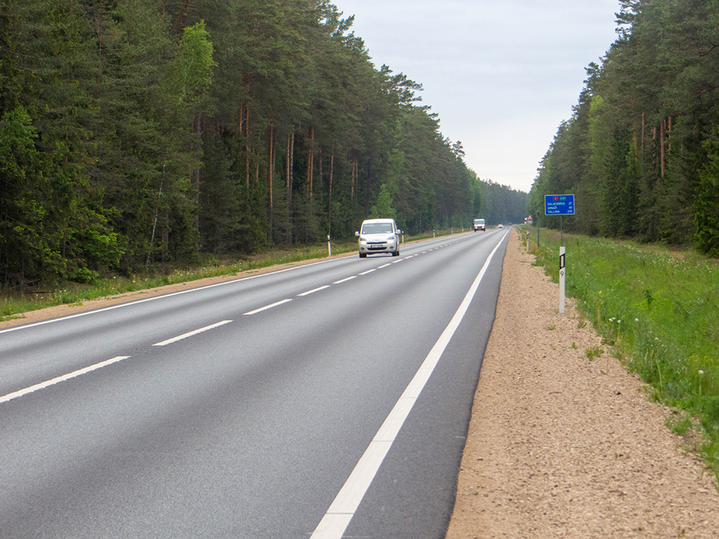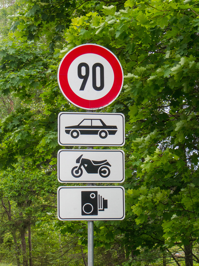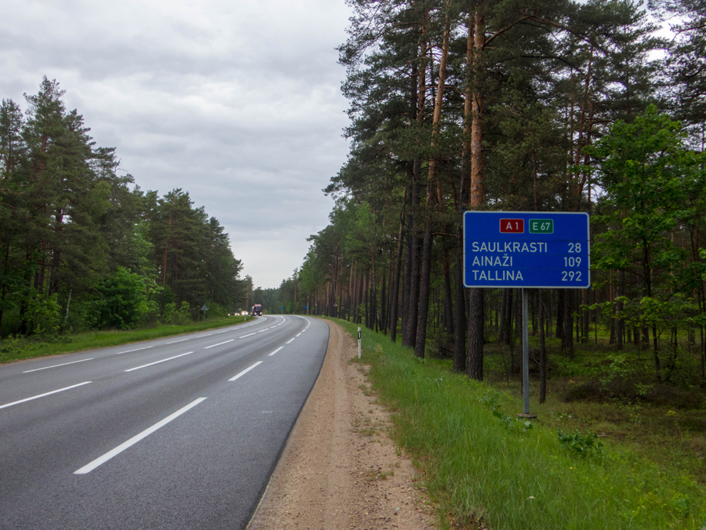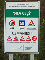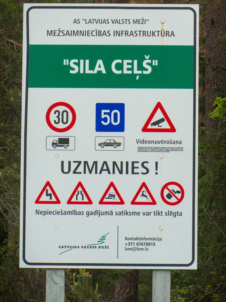 In Zvejniekciems sah ich wieder so ein Schild mit diesen Verbotsschildern drauf. Zum Glück betrafen die Sperrungen nicht meine Route.